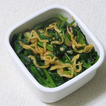 ほうれん草を茹でたものを和えるだけ。