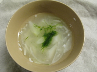 さすがに彩りは寂しいので、青海苔を浮かべました。